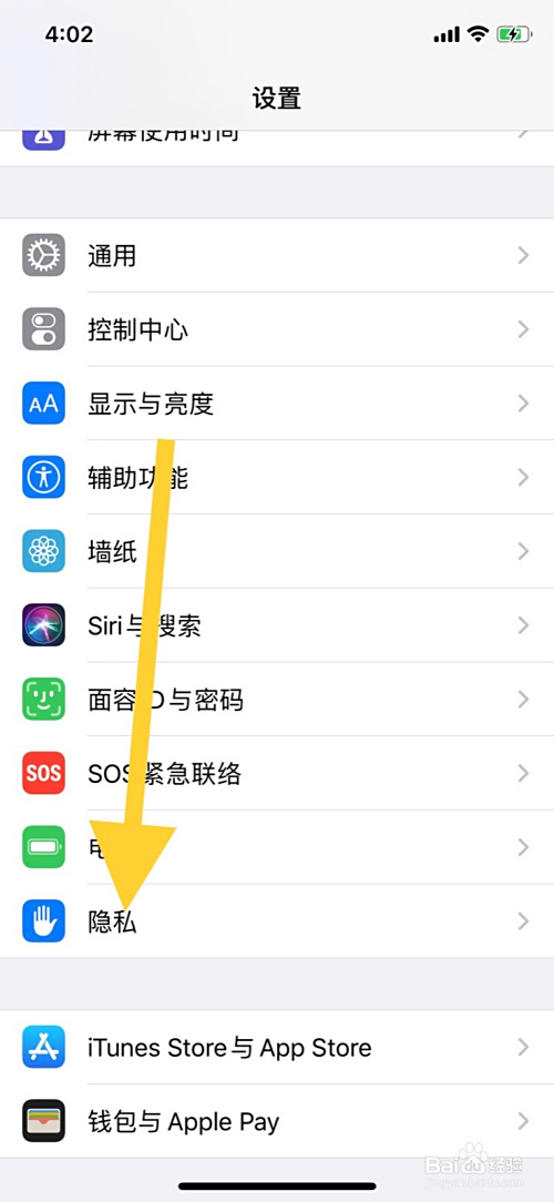 滑动设置页面点击隐私。