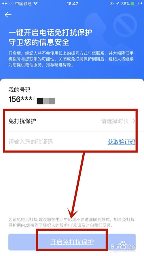3.选上免打搅庇护的时长并输入验证码,点击开启免打搅庇护,即可。