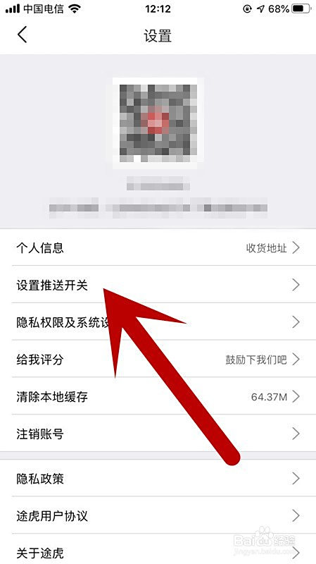 4、进入后,选择并点击设置推送开关。