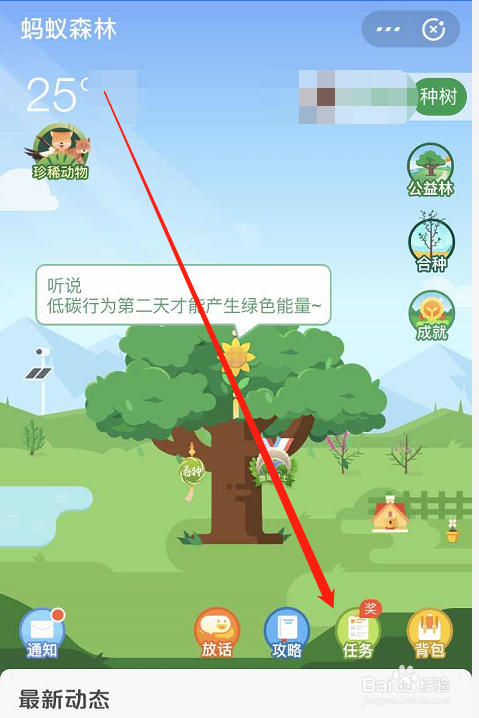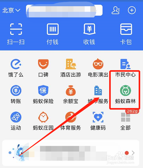 然后点击首页中的“蚂蚁丛林”图标,进入到蚂蚁丛林的应用内。