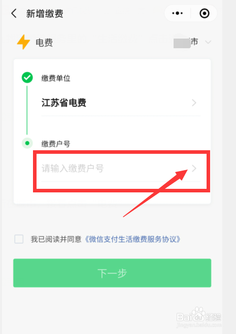 6. 在弹出的页面中输入缴费单元和电费客户号,接着在“我已阅读并赞成”前面打钩,左后点击“下一步”输入缴费金额点击提交即可