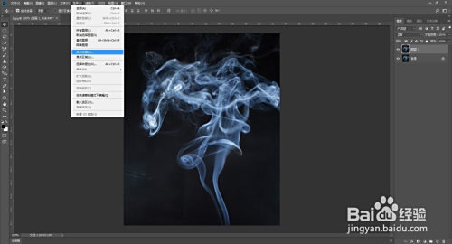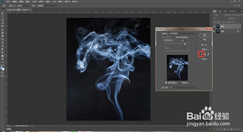 打开ps软件打开图片,按Ctrl+j复制图层,点击选择--色彩规模,用吸管取烟雾颜色。