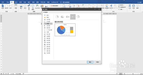点击饼图,选择复合条饼图并确定,图表被插入到文档中。