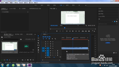 然后将导入的音频拉入到时候轴面板中,就当作功将素材导入到Pr中了。我们可以经由过程预展面板查看导入的素材。