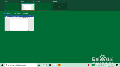 5.按下“Ctrl+win+D ”键,就可以成立一个新的桌面,按下“win+Tab”键,6.同时点击上方新建桌面同样可以成立一个新的桌面。