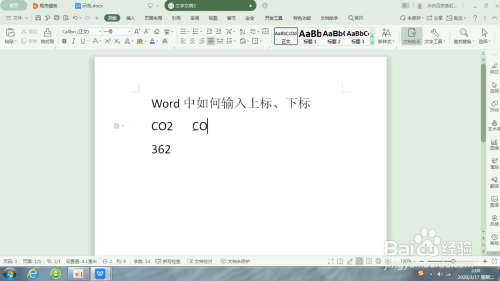 我们以CO2和362为例。良多人城市呈现文档界面中这种环境。起首我们输入"CO"。