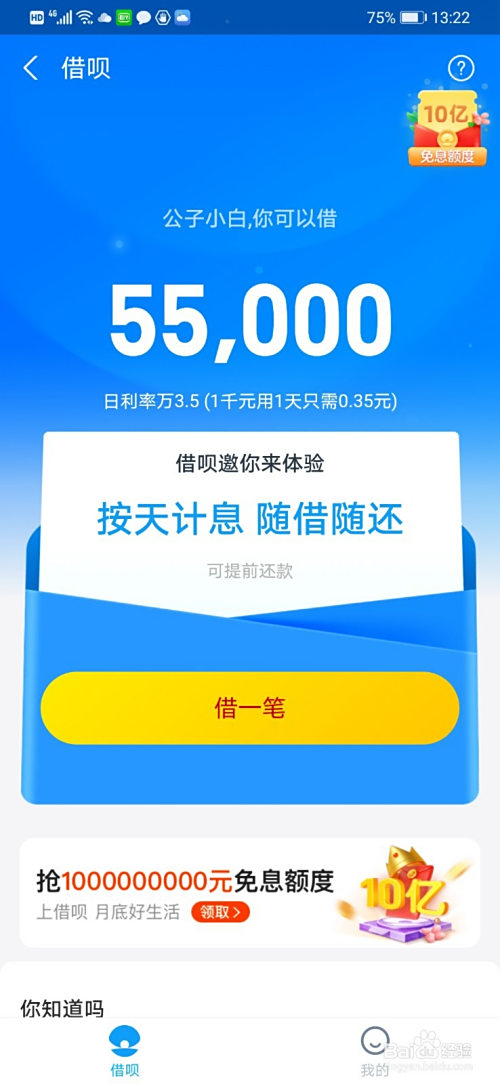 在我的界面,往下看一下,中心有一个借呗,点击进入。