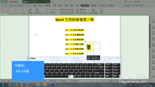 3.Alt+A键,快速打开表格菜单。