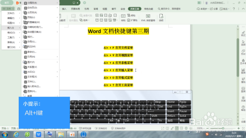 4.Alt+I键,快速打开插入菜单。