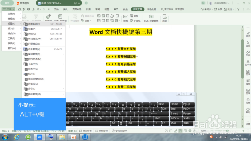 2.ALT+v键,快速打开视图菜单。