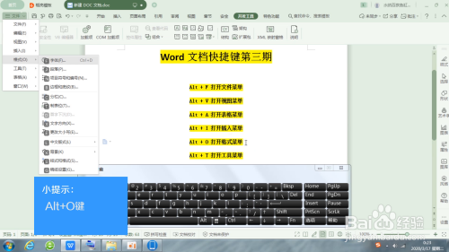 快速打开插入菜单、快速打开格局菜单以及快速打开东西菜单。