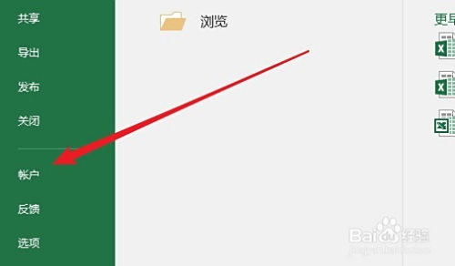 然后再打开的下拉菜单后,点击账户的菜单项。
