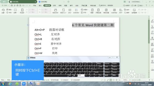 4.选中文本,利用"Ctrl+E"键可以快速居中对齐。