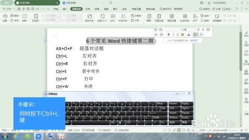 2.选中文本,利用"Ctrl+L"可以快速标的目的左对齐。