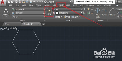我们在CAD界面的菜单栏中点击注释按钮,然后点击标注按钮,我们先给我们要标的线段先通俗标注下,如图所示。