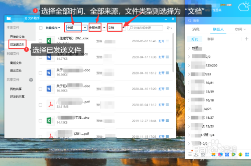 再点击选择“已发送文件”,并选择全数时候、全数来历,文件类型则选择为“文档”。