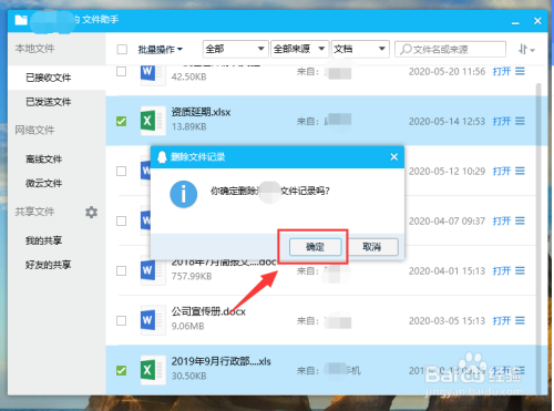 点击弹出对话框的“确定”,即可删除已领受的EXCEL文件。