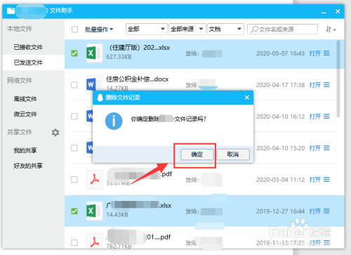 点击弹出对话框的“确定”,即可删除已发送的EXCEL文件。此至QQ利用过程中发生的EXCEL文件均已删除。