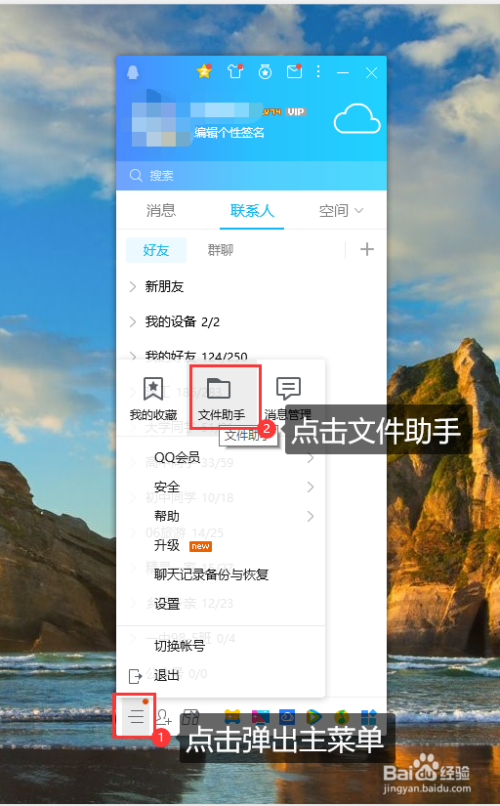 点击“本家儿菜单”图标,在弹出的菜单中选择“文件助手”。