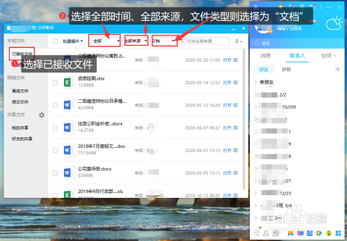 在文件助手对话框中,先选择“已领受文件”,并选择全数时候、全数来历,文件类型则选择为“文档”。