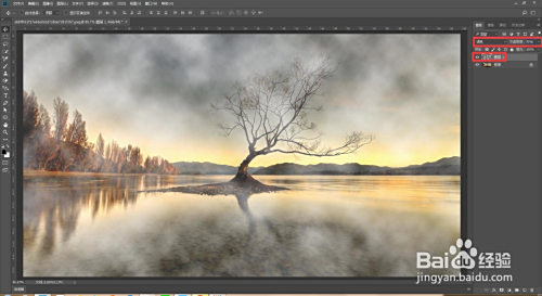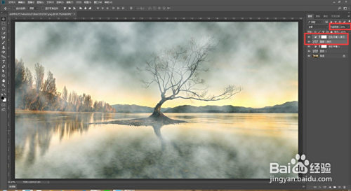 选中色彩均衡和分层云彩图层按Ctrl+j复制,再降低不透明度,此刻结果就做好了。