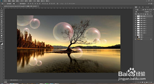 点击椭圆东西把气泡框选复制出来,再按Ctrl+t调整气泡的巨细,再把夹杂模式改为滤色,复制气泡调整巨细和位置,结果就做好了。