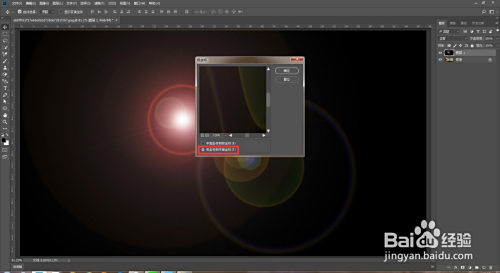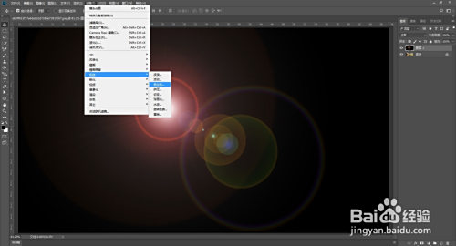 选择黑色图层点击衬着--镜头光晕,点击确定。