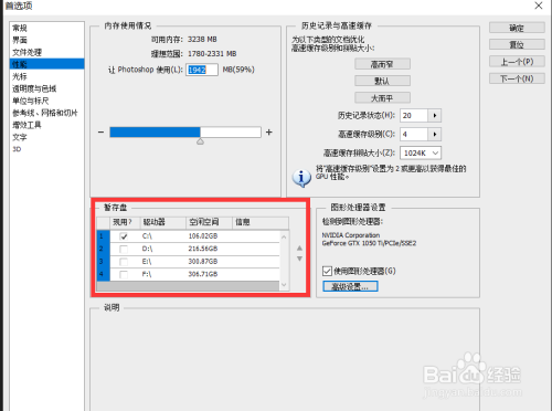 打开暂存盘勾选内存比力大的硬盘,把c盘勾选去失落