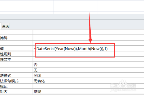 输入函数:DateSerial(Year(Now()),Month(Now()),1)