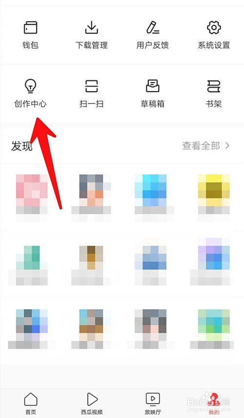 打开今日头条,点击我的------创作中间。