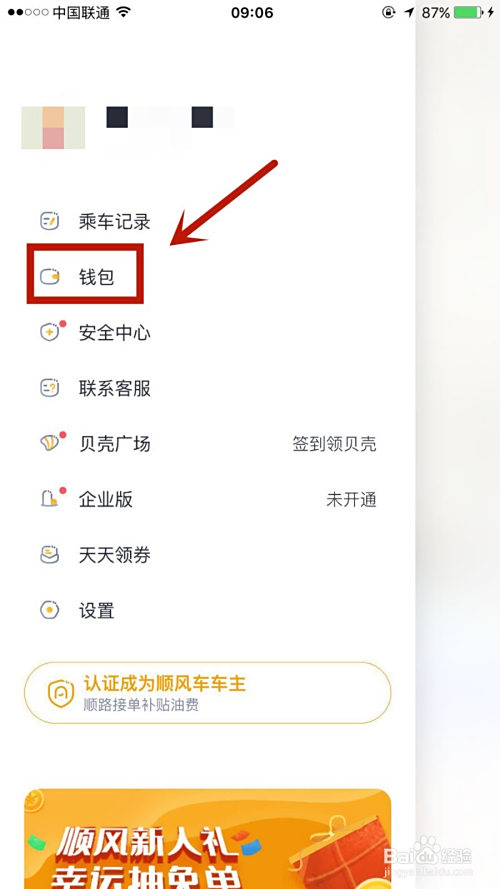 在左侧弹出的东西栏中,点击进入钱包选项。