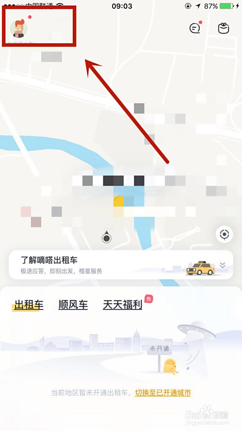 1.打开嘀嗒出行,点击左上角的人物小标。