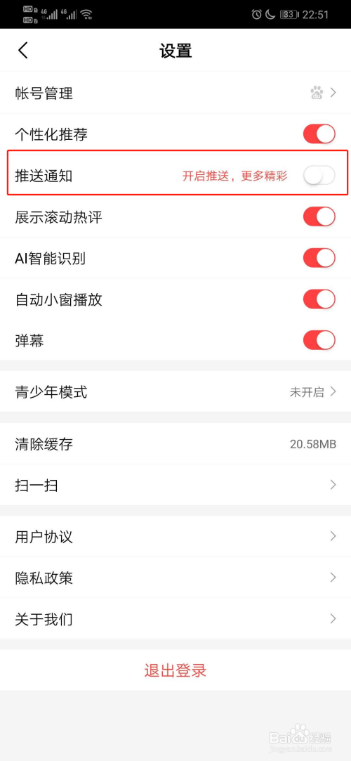 之后封闭推送通知,如图所示。