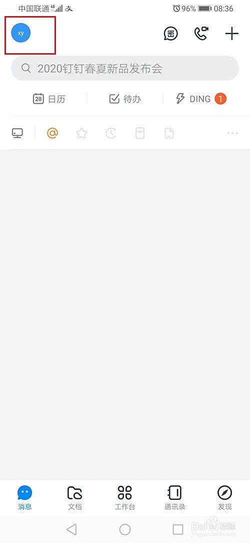 第一步打开钉钉,进去动静界面,点击头像,如下图所示: