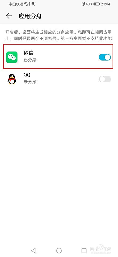 第五步开启微信兼顾之后,就当作功双开微信了,如下图所示: