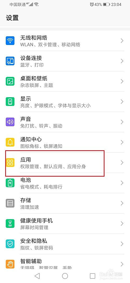 第二步在设置中,点击应用,如下图所示: