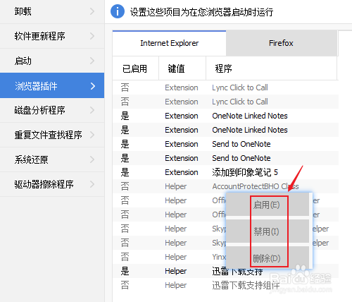 点击浏览器插件,里面包含的是系统中安装的浏览器中所安装的插件。可以对这些插件进行联系关系操作。
