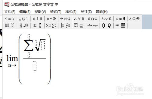 点击上方菜单栏中的【插入】->【公式】。在弹出的“公式编纂器”内编纂我们的公式。
