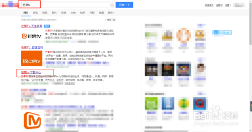 起首百度搜刮芒果tv,如图所示。