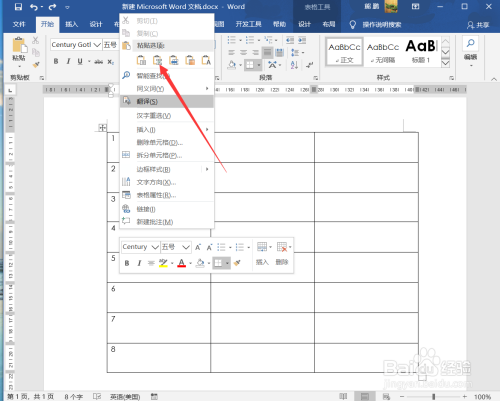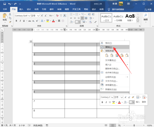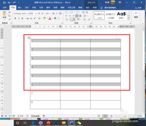 1、打开Word在表格界面选择多行