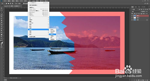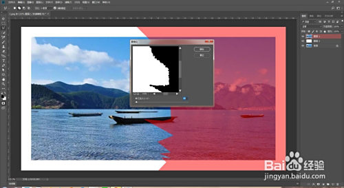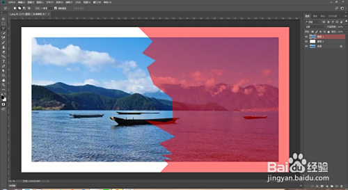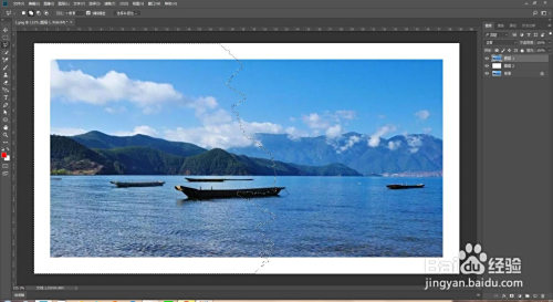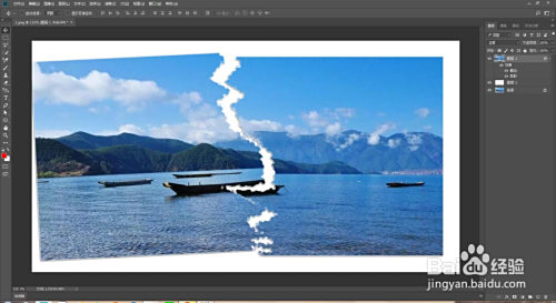 新建图层填充白色,拖到复制图层下方。选中复制图层点击多边形套索东西,在照片上套出一个缺口,再按q键快速蒙版。