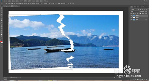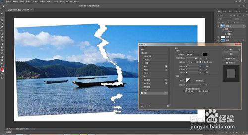 按Ctrl+t键移动选转选中区域,再双击图层调出图层样式给照片添加投影,此刻照片撕碎结果就做好了。