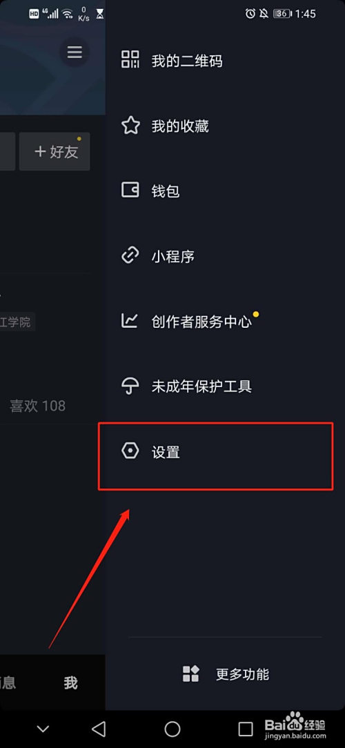 进入“我的”界面后,点击手机屏幕右上角“三条横的图标”,如图箭头所指。