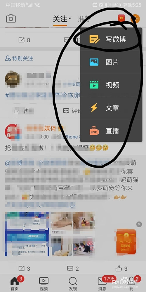 此时我们可以看到良多发布模式,好比写微博,图片,视频等等,此处我们选择“写微博”。