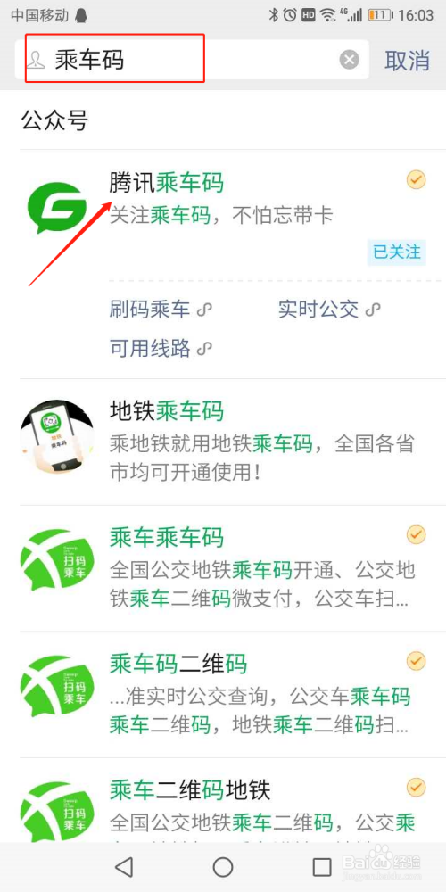 点击微信右上角【+】--【添加伴侣】,点击【公家号】,搜刮【搭车码】,添加“腾讯搭车码”微信公家号。