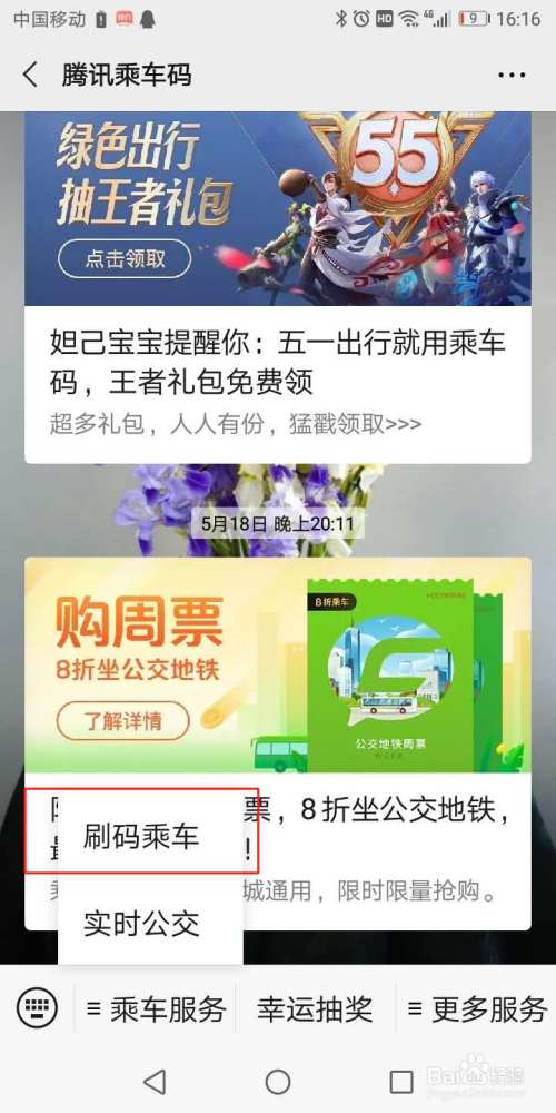 打开“腾讯搭车码”微信公家号,点击左下角,选择【刷码搭车】