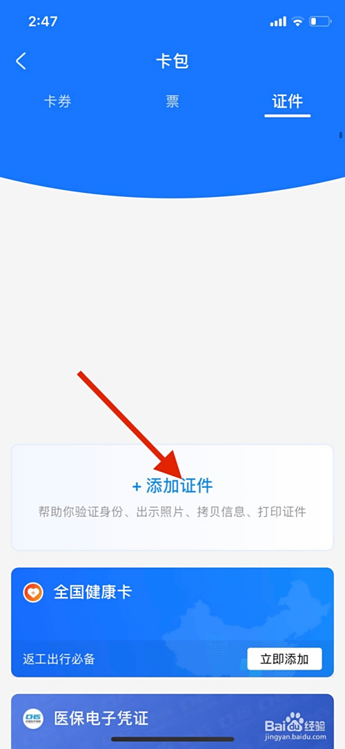 点击添加证件添加新的证件。