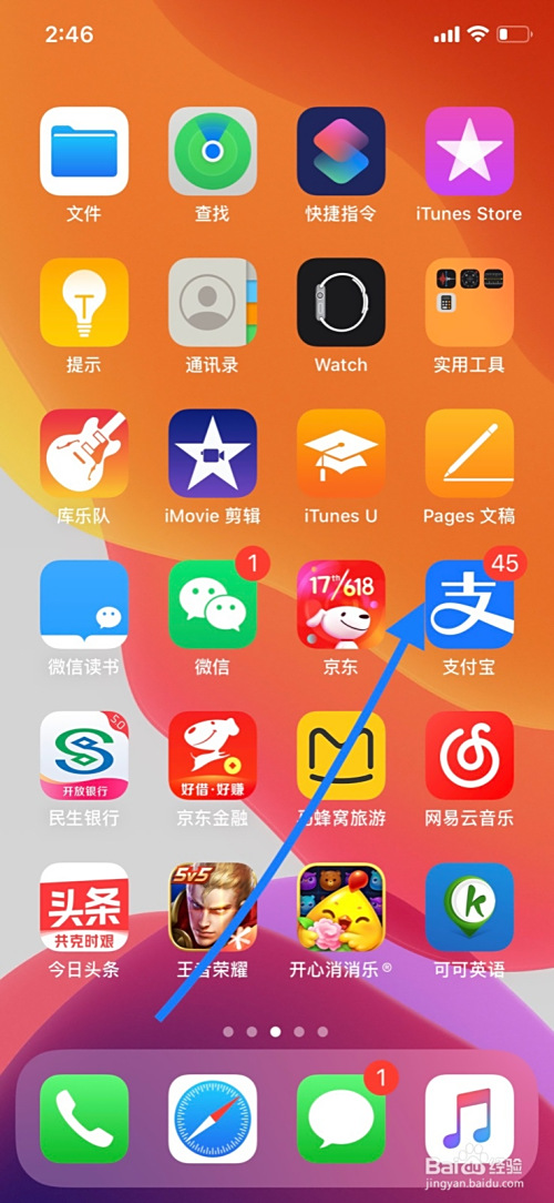 解锁手机点击支付宝进入。