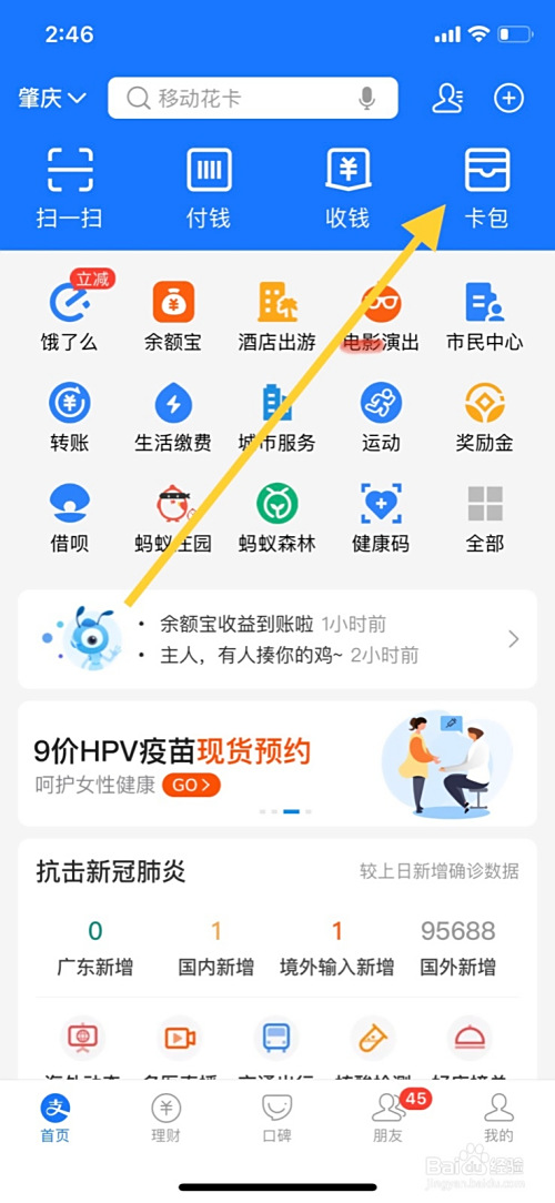 2、点击页面卡包进入页面。