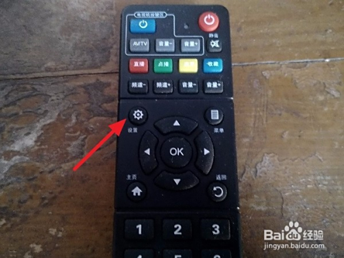 【3】用遥控器瞄准魔百盒,按下“设置”键;